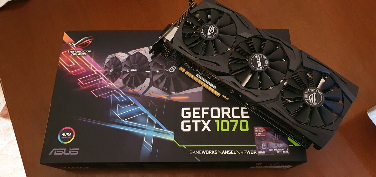 Grafikkarte: ASUS ROG Strix GeForce GTX 1070 OC, ROG-STRIX-GTX1070-O8G-GAMING, 8GB GDDR5, DVI, 2x HDMI, 2x DP;