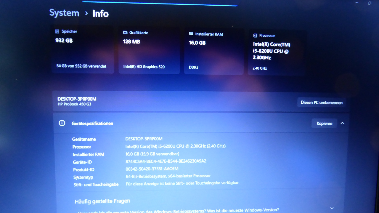 HP ProBook 450 G3 Intel Core i5 6200U, 16GB RAM, 1TB SSD, Windows 11 pro !