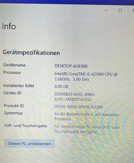 Verkaufe ein voll funktionsfähiges Notebook der Marke Terra. Akku läuft, Monitor ohne Kratzer. 8 GB Ram, Windows 10 Home 64 bit, Intel i5 2,6 GHz, mit DVD/CD-Laufwerk